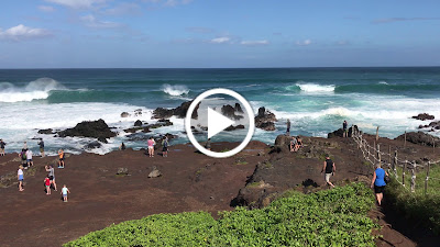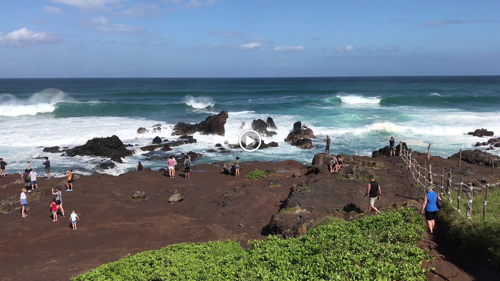 On our way to that road, we stopped at a lookout point, where we saw some GIANT waves! We also found out that on the beach below, it's possible to see sea turtles. And we found one! It was quite large, and attracted many people, and some of the people weren't so intelligent, getting right up next to it to take selfies. I am so surprised it didn't try to bite any of them. I would have, if I was that turtle. Of course, you all know my feelings about having my picture taken.